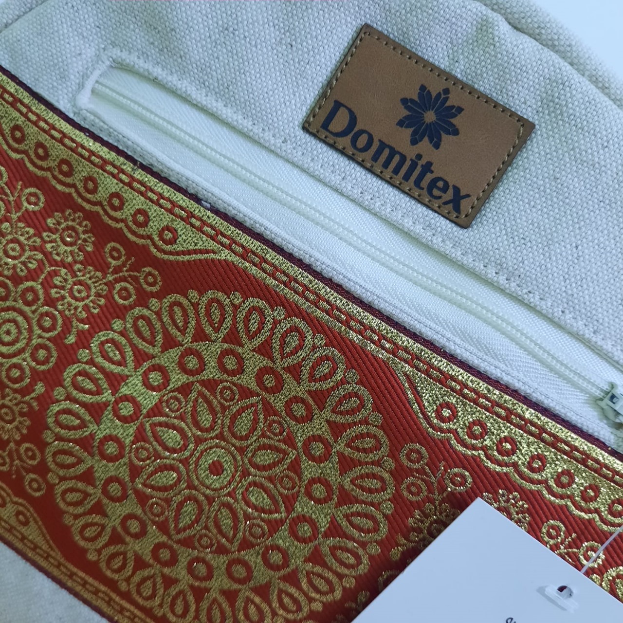 Ventajas - Sostenible: Hecho con materiales naturales y duraderos, contribuyendo al cuidado del medio ambiente. - Elegante y Funcional: Combina un diseño atractivo con la funcionalidad necesaria para el uso diario. Cuidados - Limpieza: Recomendamos lavar a mano y secar al aire . Evitar el uso de productos químicos fuertes para mantener la integridad del material y la decoración. ## Compromiso con la Sostenibilidad y la Cultura En Domitex, nos dedicamos a crear productos que no solo sean funcionales y estéticamente agradables, sino que también promuevan un estilo de vida sostenible y celebren la riqueza cultural de nuestra tierra. Nuestro bolso circular de lona de algodón decorado con una greca ecuatoriana es una muestra de nuestro compromiso con el medio ambiente y el patrimonio cultural.